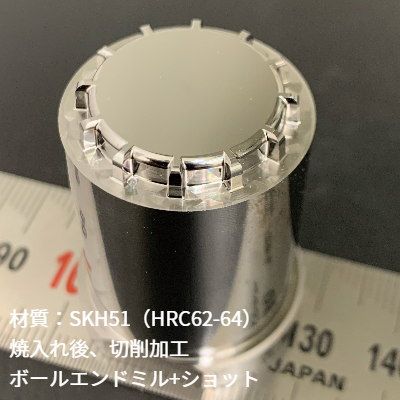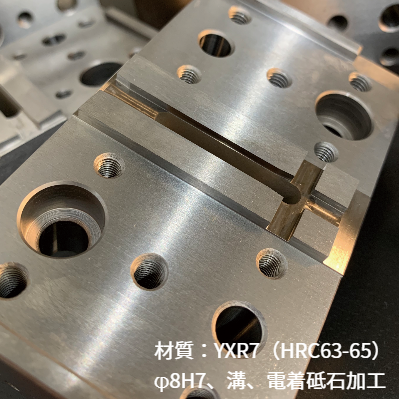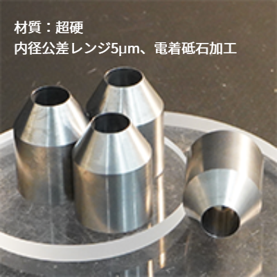 超硬合金、SKD11(HRC61-63)などの高硬度材の切削加工が可能となり、高精度に仕上げます。またPCD/CBN電着砥石を使用した研削加工も高精度に仕上げることが可能です。